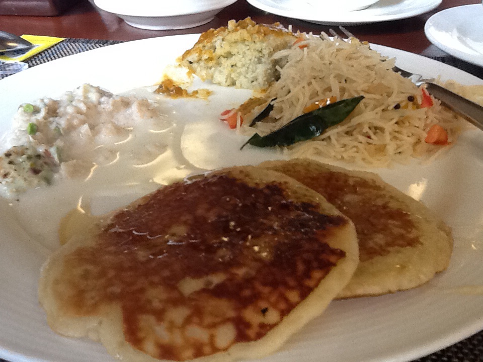 Our first hotel is Hotel Jivitesh, which is clean and very friendly.  Our breakfast was all vegetarian and quite tasty, mostly savory dishes.  The little dumpling in the picture above is like polenta; the pancakes are just that.  They’re eggless though, so nothing like ihop’s. The other picture is me in front of the lotus headboard in our room.