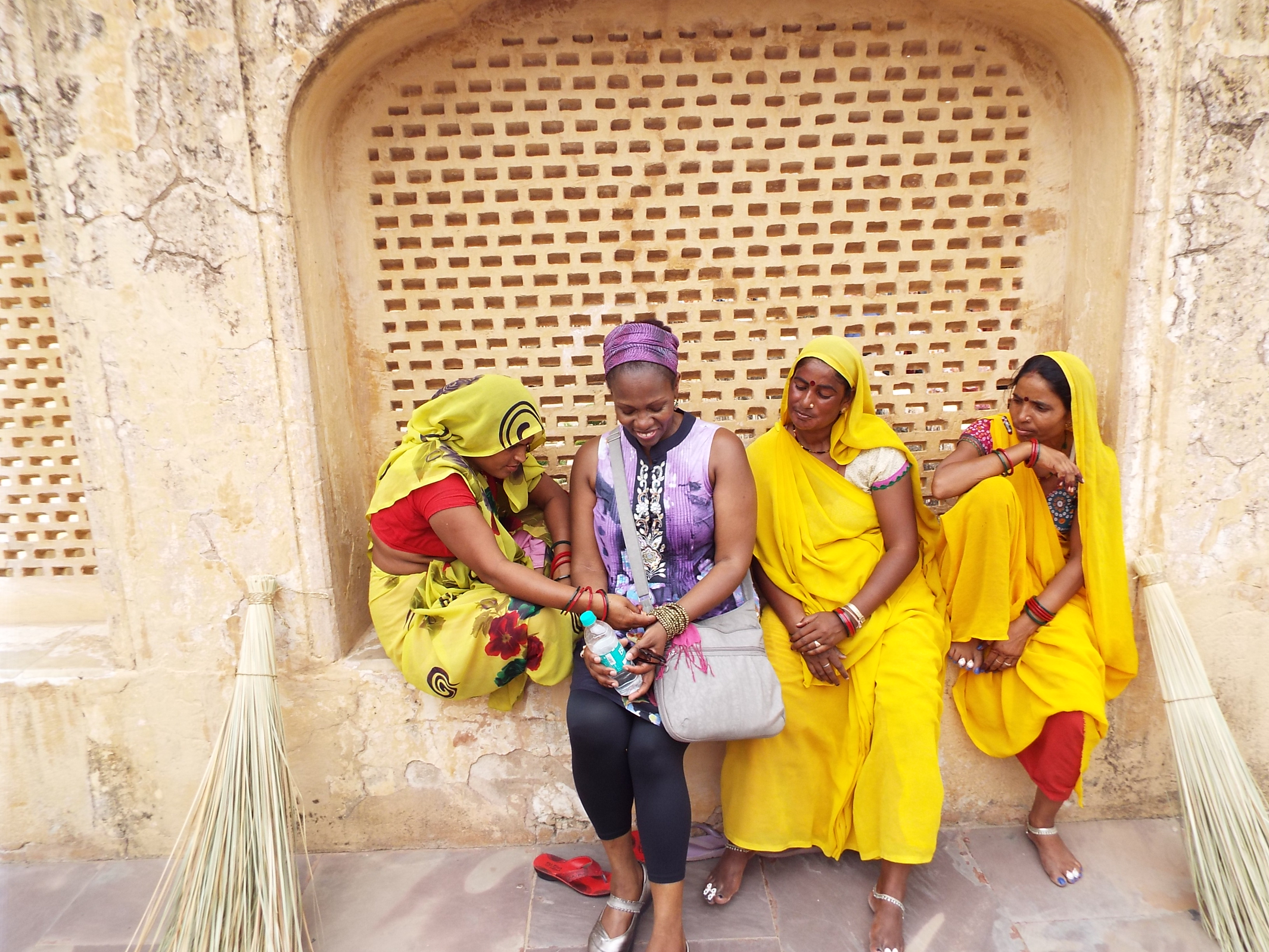 I thought these women looked like personified marigolds in their dazzling yellow saris. They are actually pretty savvy sweepers at the Queen’s palace, hiding in this alcove and offering to pose for pictures for a few rupees.